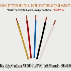 Công ty TNHH Mai Nga – Dịch vụ kỹ thuật Thái Nguyên phân phối, cung cấp Bảng giá bán Dây điện Cadisun lõi đồng bọc cách điện VCSF Cu/PVC 1×2.5mm2 450/750V – 50/0.24 – dây đơn mềm chính hãng, giá rẻ tại Thái Nguyên và các tỉnh Miền Bắc.
