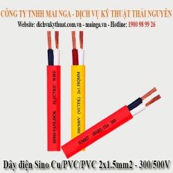 Công ty TNHH Mai Nga – Dịch vụ kỹ thuật Thái Nguyên phân phối, cung cấp Bảng giá bán Dây điện Sino lõi đồng bọc cách điện Cu/PVC 1×1.5mm2 450/750V – 30/0.25 – dây đơn mềm chính hãng, giá rẻ tại Thái Nguyên và các tỉnh Miền Bắc.