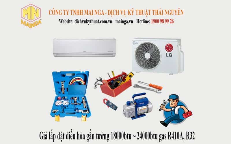 Công ty TNHH Mai Nga – Dịch vụ kỹ thuật Thái Nguyên cung cấp bảng giá lắp đặt điều hòa gắn tường 18000btu – 24000btu sử dụng gas R32, R410A tại Thái Nguyên. Của các hãng Samsung, Lg, Panasonic, Funiki, Midea, Mitsubishi, Sumikura, Sanyo, Sharp, Nagakawa, Gree, Casper, … Uy tín, chất lượng, chuyên nghiệp, bảo hành, nhanh chóng.