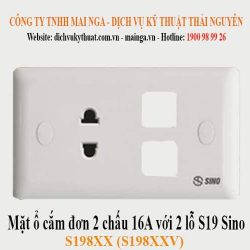 Công ty TNHH Mai Nga – Dịch vụ kỹ thuật Thái Nguyên phân phối, cung cấp, bán mặt ổ cắm công tắc S19 Sino – Mặt ổ cắm đôi (2 ổ cắm) 3 chấu S1982E (S1982EV) chính hãng, chất lượng tốt, giá rẻ. Sản phẩm S19 Sino là sự lựa chọn hàng đầu cho hệ thống điện công trình dân dụng, công nghiệp .
