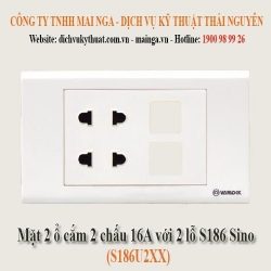 Công ty TNHH Mai Nga – Dịch vụ kỹ thuật Thái Nguyên phân phối, cung cấp, bán Mặt ổ cắm đơn 2 chấu 16A với 2 lỗ S186 Vanlock – Sino S186UXX chính hãng, giá rẻ.