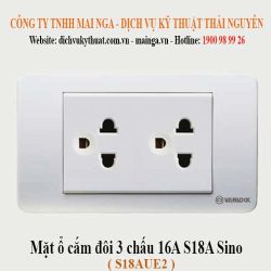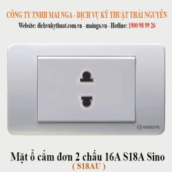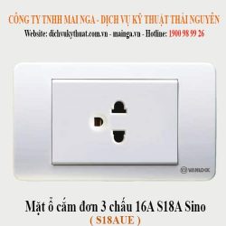 Công ty TNHH Mai Nga – Dịch vụ kỹ thuật Thái Nguyên phân phối, cung cấp, bán mặt ổ cắm công tắc S18A Vanlock – Sino – Mặt ổ cắm đơn 3 chấu với 2 lỗ S18AUE/XX chính hãng, chất lượng tốt, giá rẻ. Sản phẩm S18A Vanlock – Sino là sự lựa chọn hàng đầu cho hệ thống điện công trình dân dụng, công nghiệp .