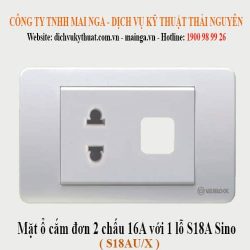 Công ty TNHH Mai Nga – Dịch vụ kỹ thuật Thái Nguyên phân phối, cung cấp, bán mặt ổ cắm công tắc S18A Vanlock – Sino – Mặt ổ cắm đơn 3 chấu với 2 lỗ S18AUE/XX chính hãng, chất lượng tốt, giá rẻ. Sản phẩm S18A Vanlock – Sino là sự lựa chọn hàng đầu cho hệ thống điện công trình dân dụng, công nghiệp .